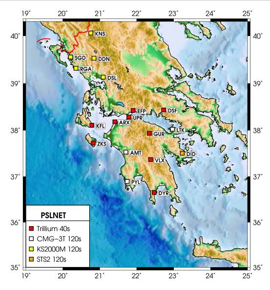 Introduction The University of Patras Seismological Laboratory (UPSL), has a long history in seismicity monitoring in Western Greece, the area with the highest level of seismic activity in Europe. The first network was installed in early 90’s around the city of Patras and it was based on short period sensors with analogue telemetry, (called PATras NETwork, PATNET). This network was monitoring the regions of Patras and western Corinth Gulf for a few years; latter it evolved into a regional network for the entire area of western Greece. Recently the deployment of a new network started. It is called PSLNET (Patras Satellite Link NETwork) and will substitute PATNET (Fig.1). It is based on three component broad band sensors and satellite telemetry. So far eighteen stations have been deployed and the plan is to have a total of twenty six stations by the end of 2009. Real time data are transmitted to central station in Patras University and then stored and processed both automatically and manually. Phase picks, locations and moment tensor solutions are stored in our web page and also sent to EMSC. Recently PSLNET became a part of the newly established Hellenic Unified Seismic Network (HUSN), thus real time broadband data are shared among the four partners, Geodynamic Institute of National Observatory of Athens, Seismological Laboratory of National and Kapodistrian University of Athens, Seismological Laboratory of Aristotle University of Thessaloniki and Seismological Laboratory of the University of Patras. PSLNET and HUSN networks have a strong potential to improve studies of the seismic sources and reveal details of the complicated tectonic regime in Greece.